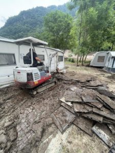 The Committee therefore decided to comply with the Lostallo municipality’s requests and we immediately set to work to solve mainly the problem of hosting the camp site, which was largely compromised. With everyone’s help, we managed to find a temporary solution to clear the ground of debris and to remove the trapped caravans from the most dangerous areas of the campsite.